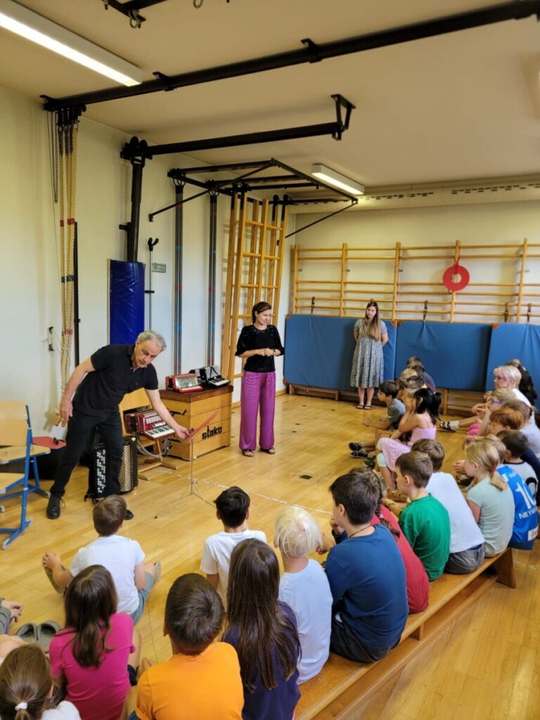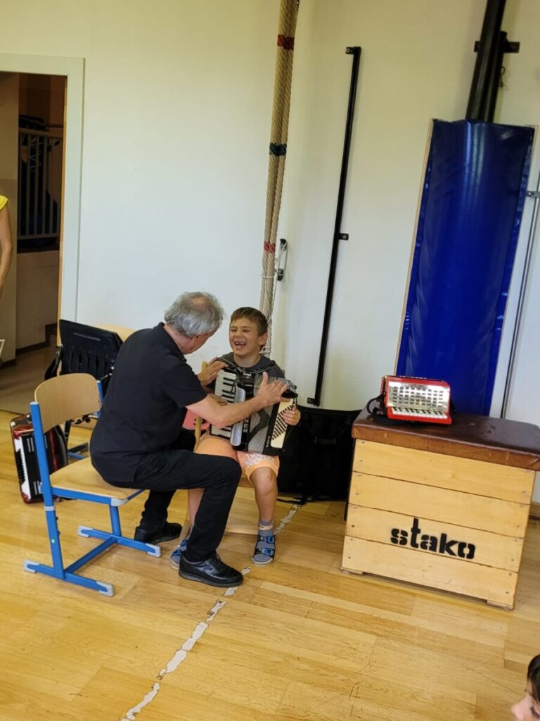 In der vorletzten Schulwoche bekamen wir musikalischen Besuch. Herr Gerhard Aichner stellte uns auf sehr unterhaltsame Weise das Akkordeon vor und begeisterte Kinder und Lehrer:innen mit seinen vielseitigen Darbietungen.