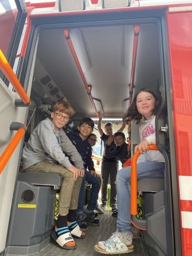 Am Donnerstag, dem 15.11.2023 kam die FF-Gödersdorf, unter der Leitung des Kommandanten Hr. Uwe Guggenberger, zu uns an die Schule. Den Kindern wurde die Arbeit der Feuerwehr näher gebracht. Während auch die Schüler und Schülerinnen ihr Wissen rund um die Feuerwehr einbringen konnten, bereiteten einige Feuerwehrleute unsere alljährliche Feueralarmübung, anschaulich mit Rauch vor. Als dann der Alarm losging, verließen die SchülerInnen vorbildlich das Schulhaus. Auf unserem Sammelplatz vor der Schule merkten wir, dass eine Klasse fehlte. Da kam schon ein Feuerwehrauto mit Blaulicht und Martinshorn. Mit Atemschutzmasken suchten und fanden die Feuerwehrleute unsere vermisste Klasse und bargen diese aus dem Schulgebäude. So ging eine anschauliche, realitätsnahe Alarmübung zu Ende.
