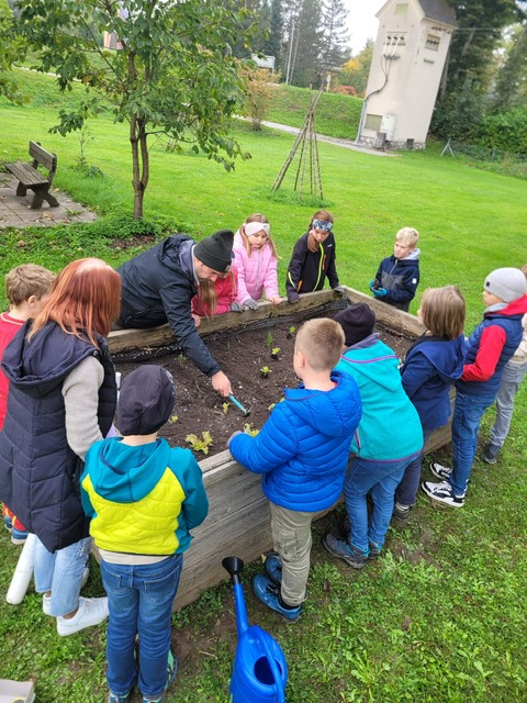In der Volksschule Gödersdorf bei Finkenstein spielt das Thema Klimaschutz und Nachhaltigkeit eine große Rolle. Das im Religionsunterricht von Christine Kropfitsch vermittelte theoretische Wissen wird zeitnah auch gleich in die Praxis umgesetzt. Will heißen: Vor der Schule wurden Hochbeete angelegt, und die Kinder können selbst Wintergemüse – wie z.B. Salat, Radieschen, Schnittlach, Kohlrabi, Spinat und Vogerlsalat – ernten. Mit fachkundiger Unterstützung von Gärtner Daniel Winter – seine Gärtnerei in Villach-St. Martin hat die Pflanzen und den Samen übrigens kostenfrei zur Verfügung gestellt. Die Beete wurden von den Kindern der 4. Klasse kürzlich bepflanzt. „Die Kinder waren voll begeistert“, erzählt Religionslehrerin Christine Kropfitsch und verspricht: „Wir werden sicher bald gemeinsam einen Salat zubereiten und eine Suppe kochen!“ Und Daniel Winter versichert, den SchülerInnen auch weiterhin mit Rat und Tat zur Verfügung zu stehen. Bereits im Vorjahr haben zwei Klassen der VS am „Autofasten“ teilgenommen. In dieser Zeit machte das Elterntaxi Pause. Fürs Durchhalten gab es einen Baum vom Referat für Schöpfungsverantwortung der Diözese Gurk.