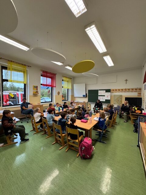 Die engagierten Feuerwehrfrauen und -männer gaben den Schülerinnen und Schülern in den Klassen einen guten Einblick in Aufgaben, Ausstattung und Alarmierung der Feuerwehr sowie Anweisungen zur schnellen Evakuierung des Gebäudes im Ernstfall.