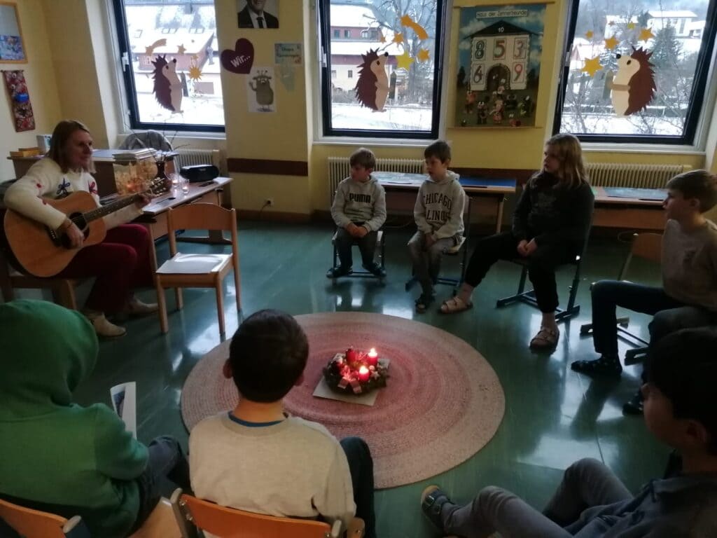 Sredi adventa so učiteljice in učitelj z učenci brkljali, peli, brali in se imelo lepo v predbožičnem vzdušju. Po končanem delu pri postajah so otroci s pesmijo in recitali otvorili božično tržnico, za kar so želi bučen aplavz.
